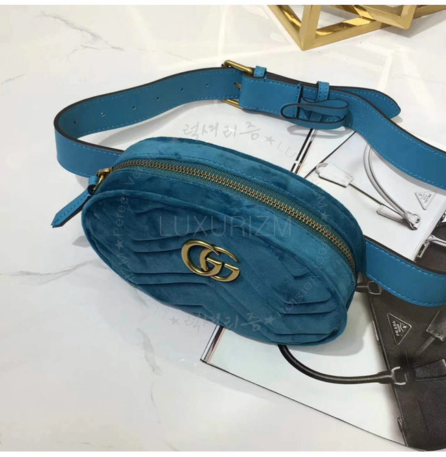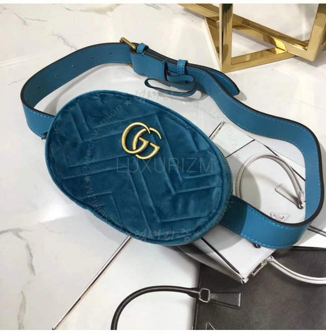 [스페셜오더]GUCCI-476434 4462 구찌 GG Marmont 마틀라세 벨벳 블루 벨트백