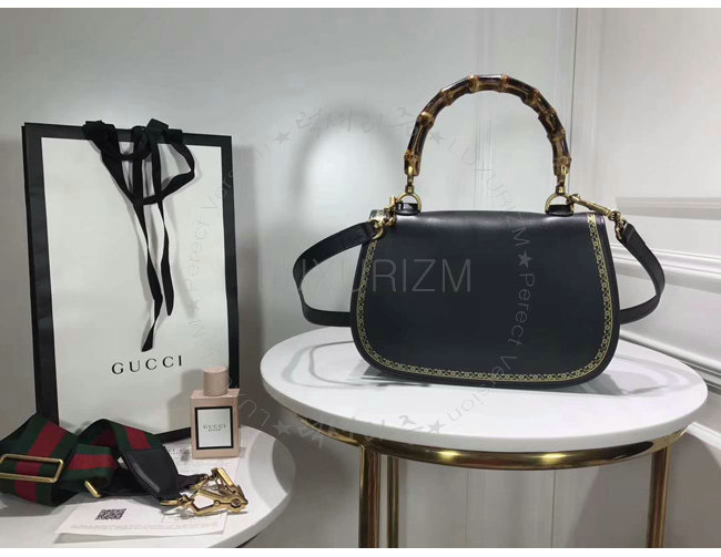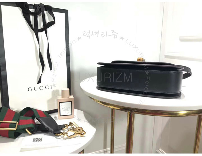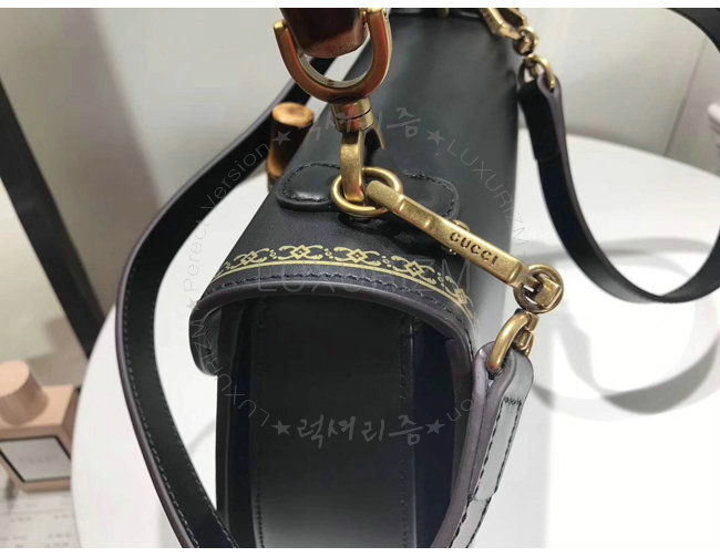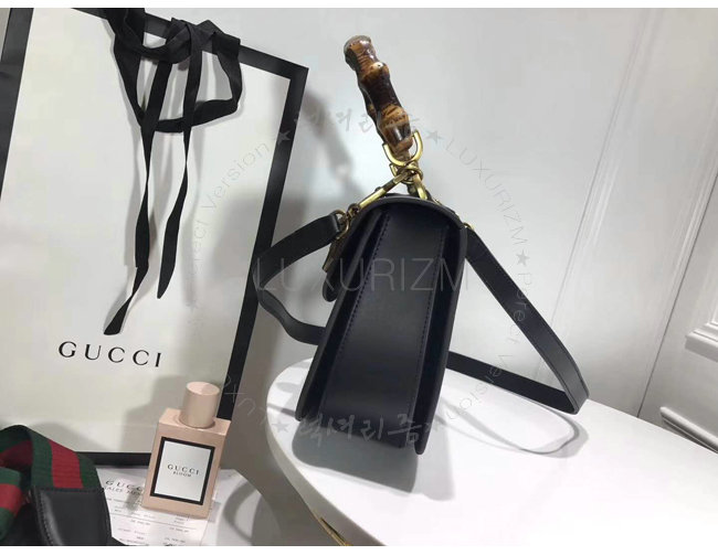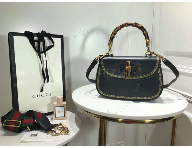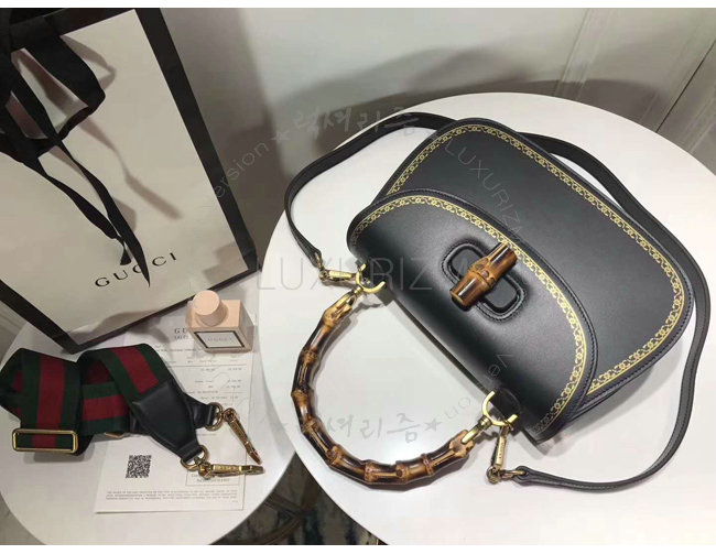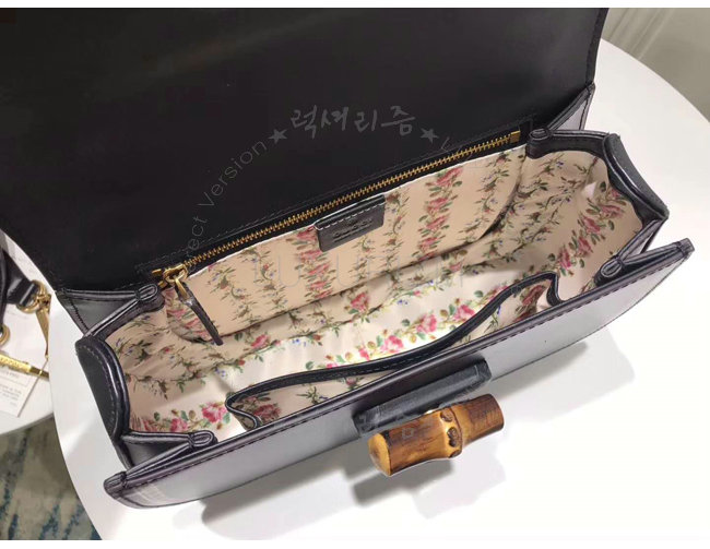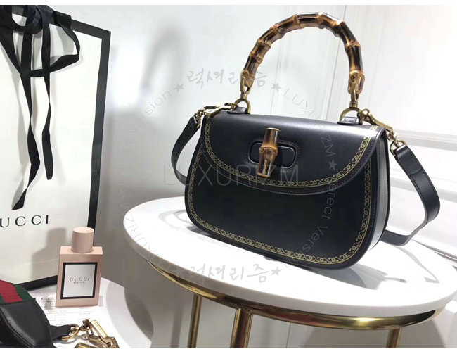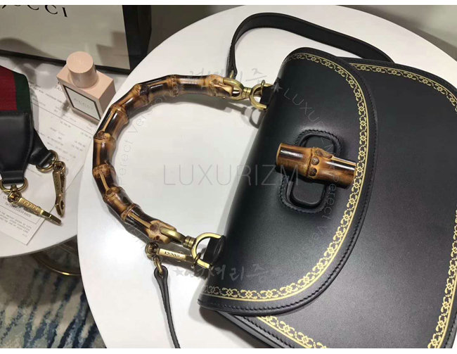 [스페셜오더]GUCCI-495880 8915 구찌 블랙 가죽 클래식 프레임 프린트 탑 핸들 밤부 백