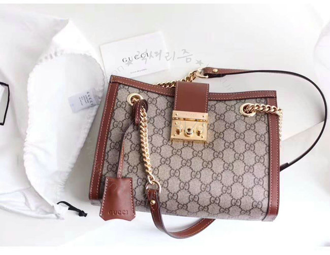 [스페셜오더]GUCCI-498156 8534 구찌 패드락 GG 수프림 캔버스 브라운 숄더 백