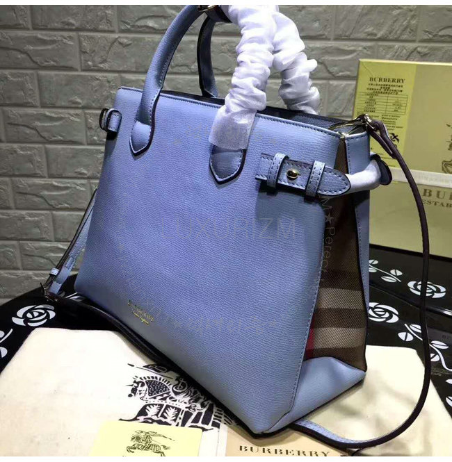 BURBERRY-40494471 버버리 미디엄 슬레이트 블루 가죽 하우스 체크 배너