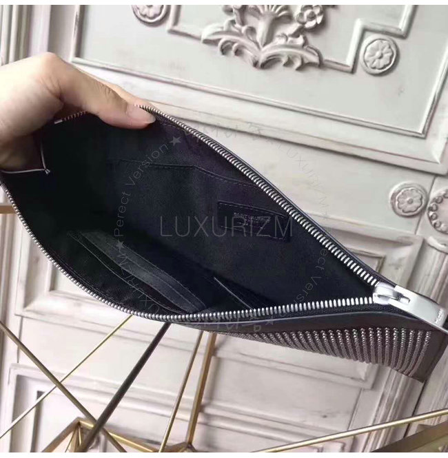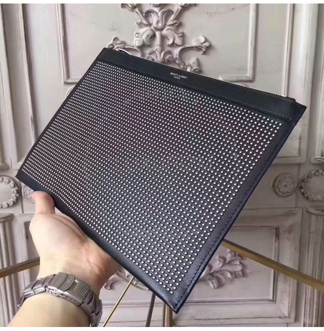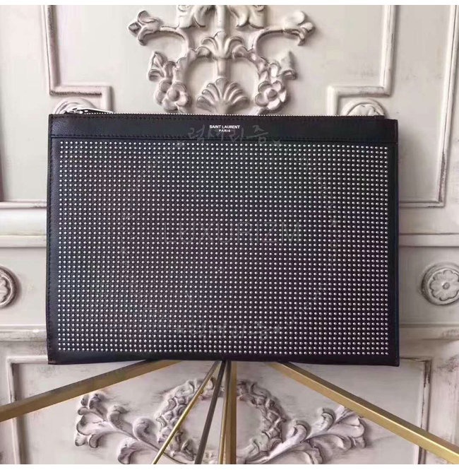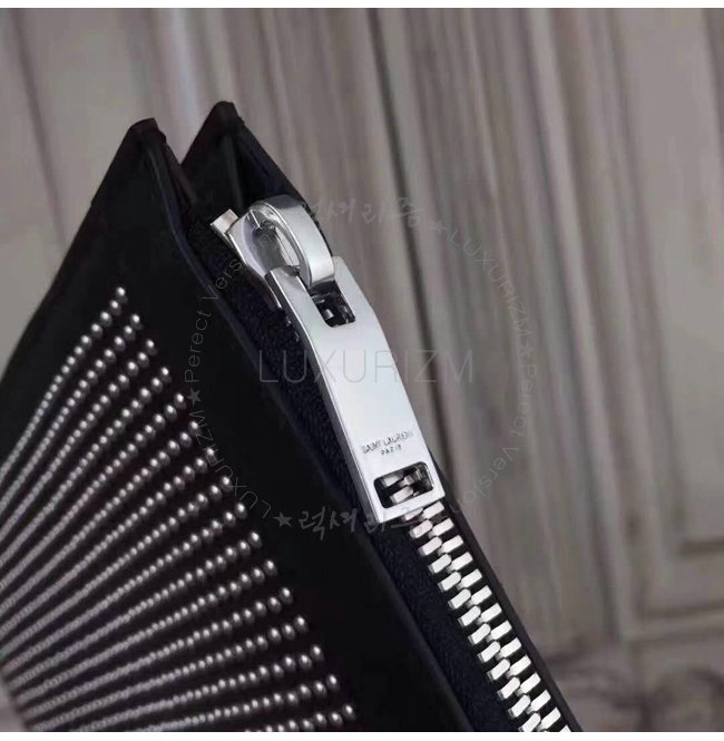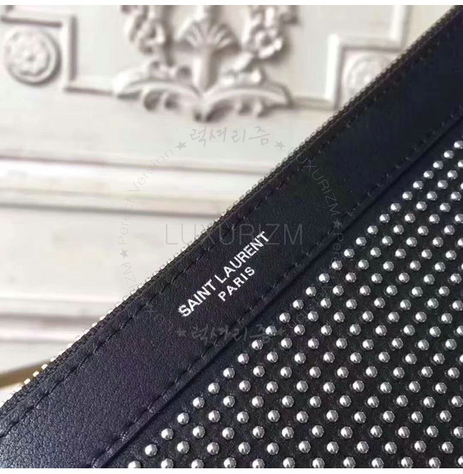[스페셜오더]SAINT LAURENT-397295 생 로랑 블랙 가죽 생 로랑 파리 스터디드 지퍼 태블릿 홀더