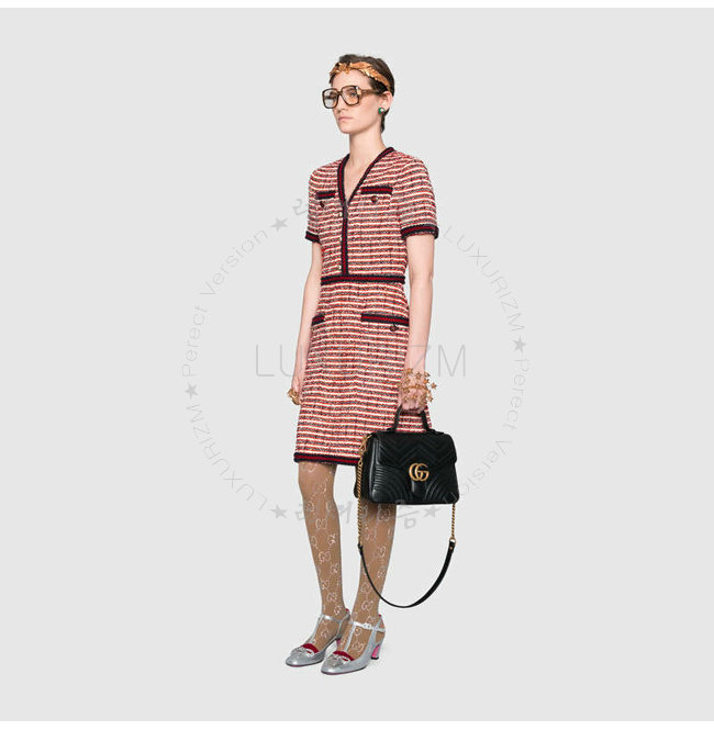 [스페셜오더]GUCCI-498110 6433 구찌 GG Marmont 레드 마틀라세 가죽 탑 핸들 백