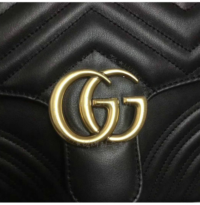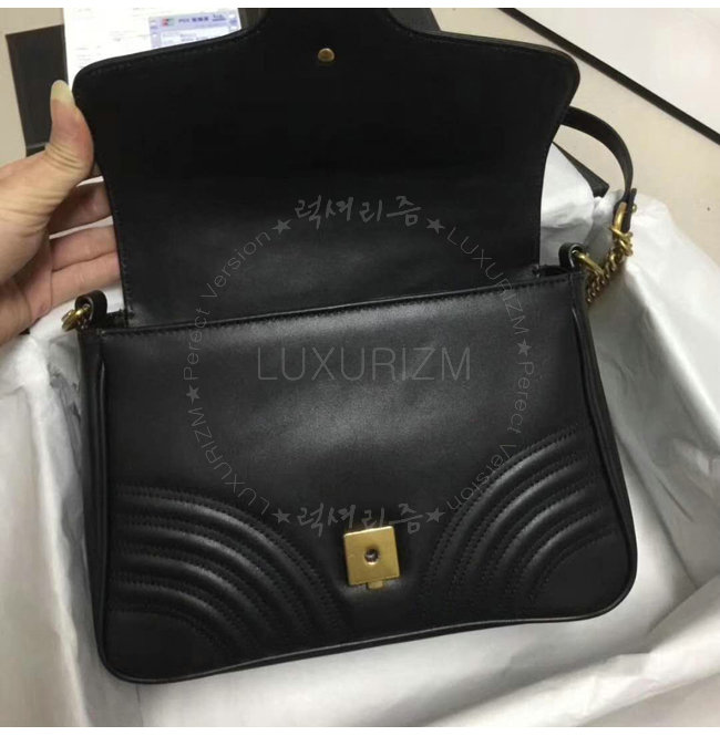 [스페셜오더]GUCCI-498110 1000 구찌 GG Marmont 블랙 마틀라세 가죽 탑 핸들 백