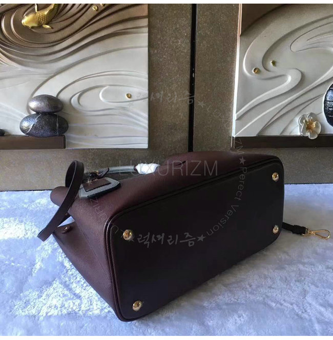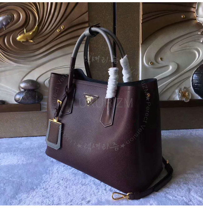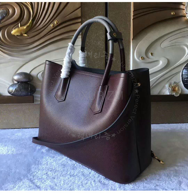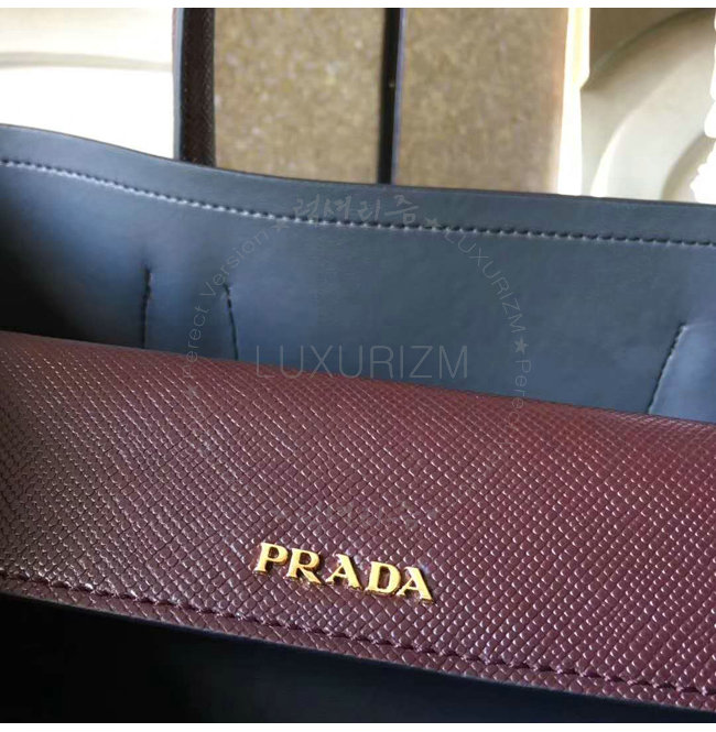 [스페셜오더]PRADA-1BG775 프라다 사피아노 더블 가죽 핸들 토트백 레드브라운