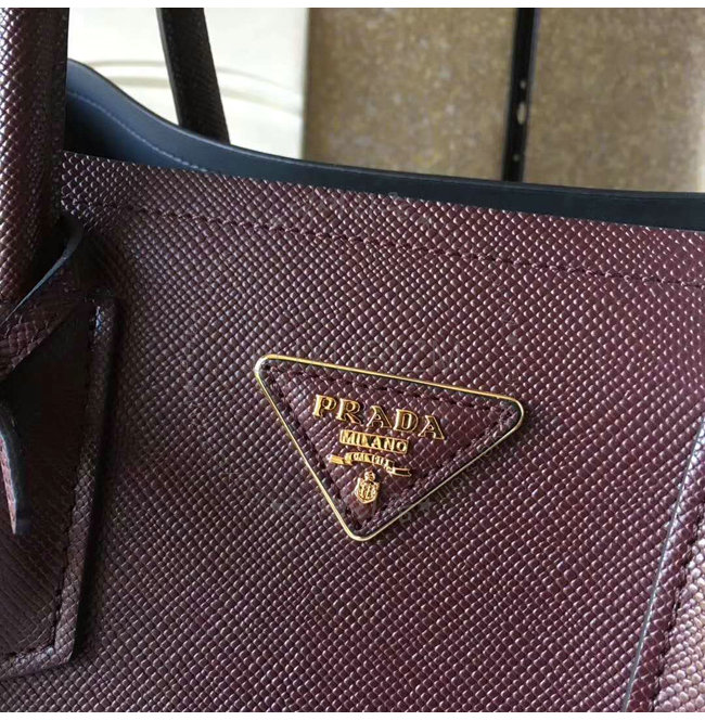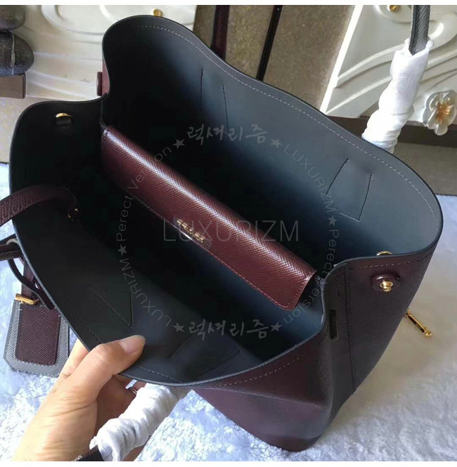 [스페셜오더]PRADA-1BG775 프라다 사피아노 가죽 투톤 핸들 와인 더블 백