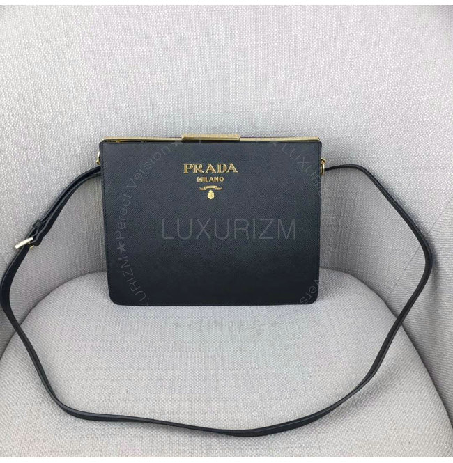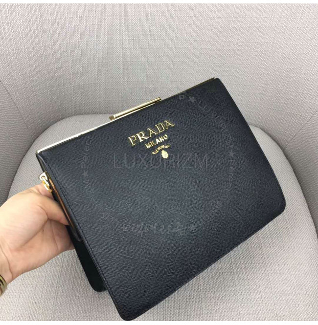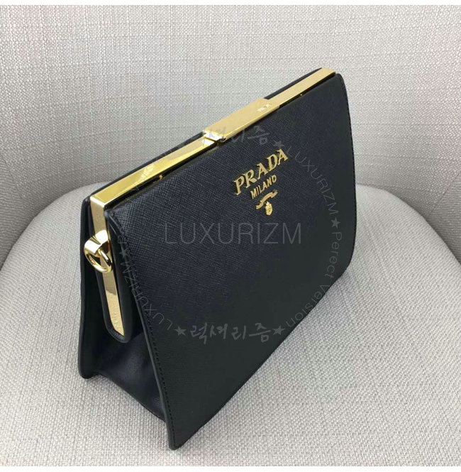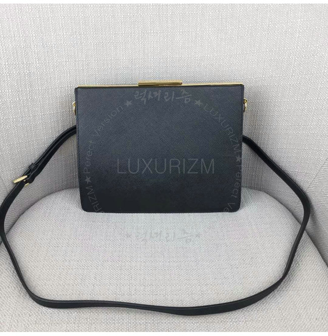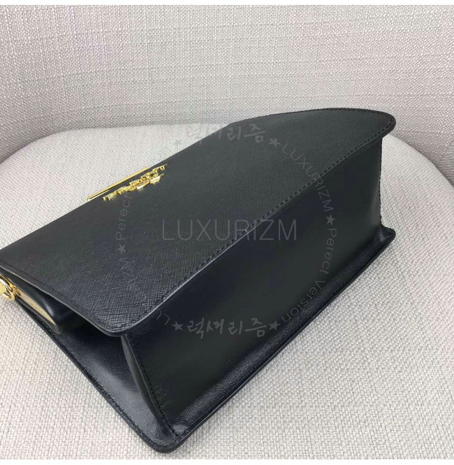 [스페셜오더]PRADA-1BC046 프라다 사피아노 가죽 라이트 프레임 블랙 숄더 백