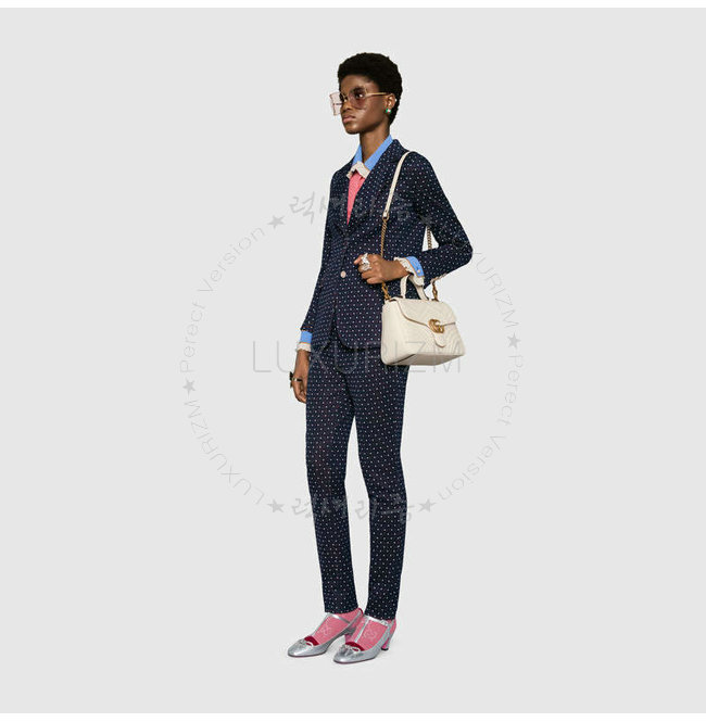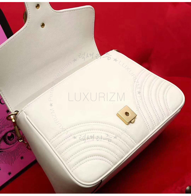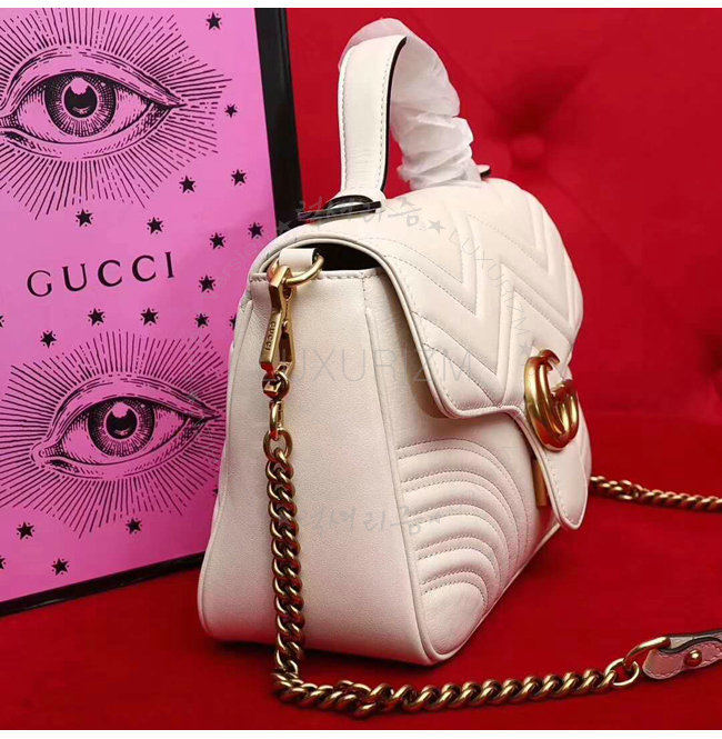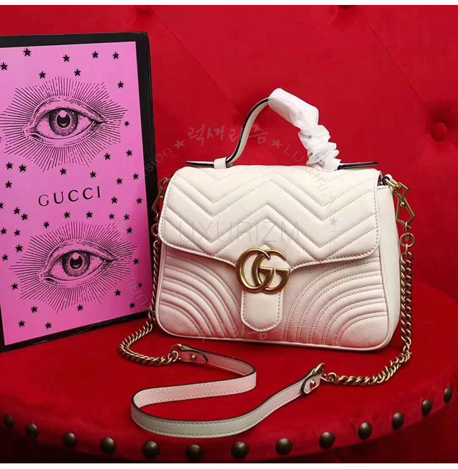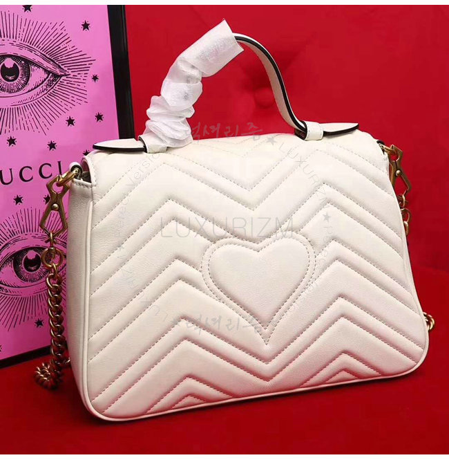[스페셜오더]GUCCI-498110 9022 구찌 GG Marmont 화이트 마틀라세 가죽 탑 핸들 백