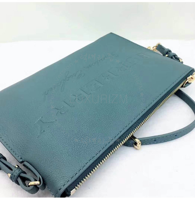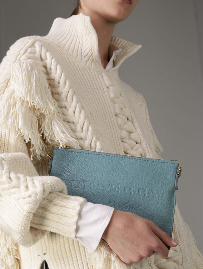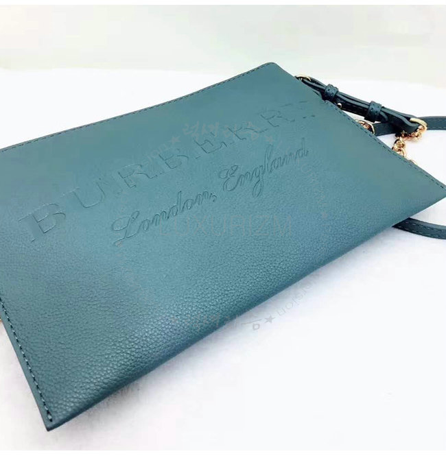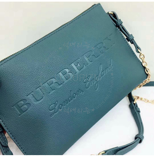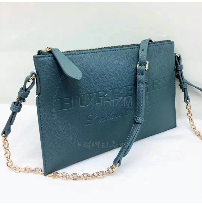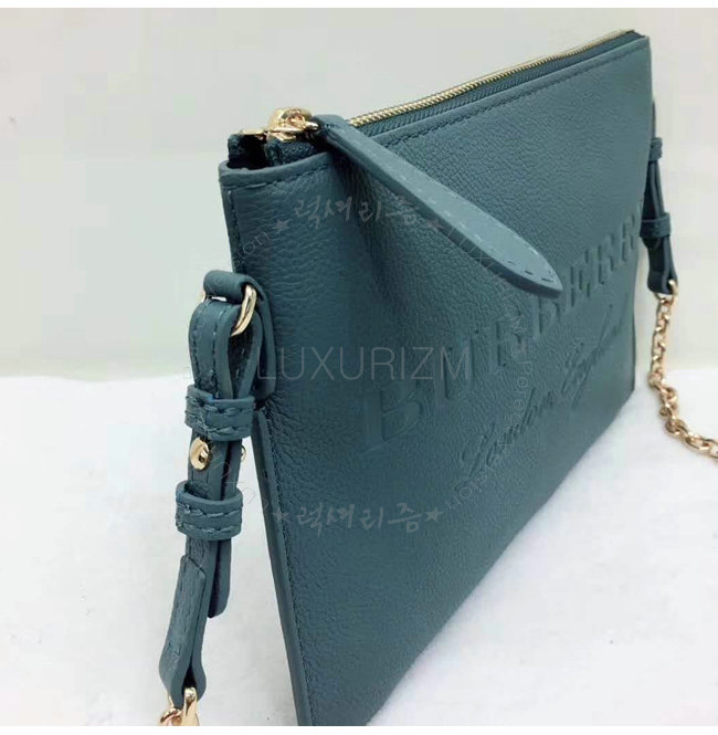 [스페셜오더]BURBERRY-40596551 버버리 송아지 가죽 엠보싱 더스티 틸 블루 클러치 백