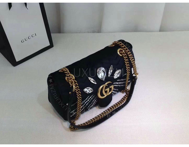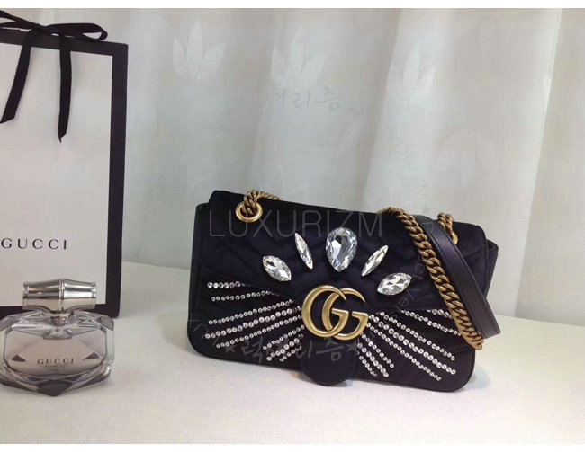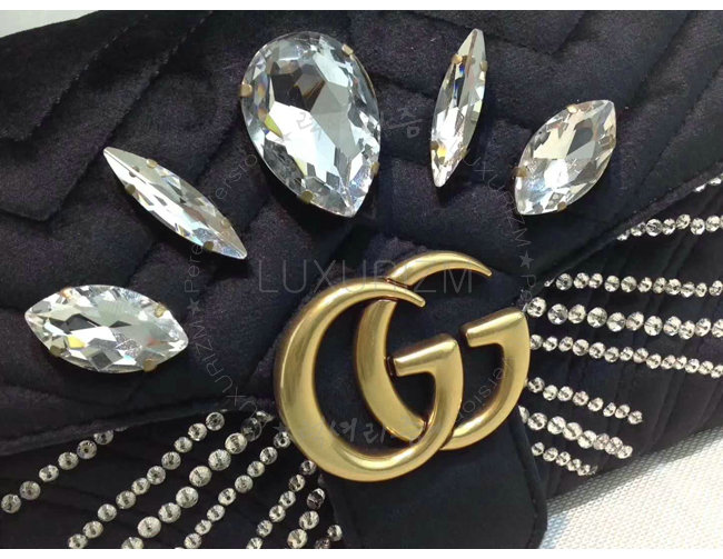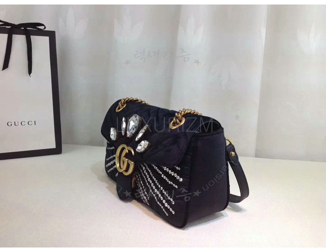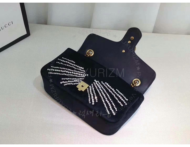 [스페셜오더]GUCCI-443497 1081 구찌 GG Marmont 크리스탈 장식 블랙 벨벳 숄더 백