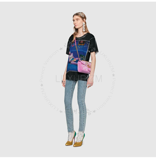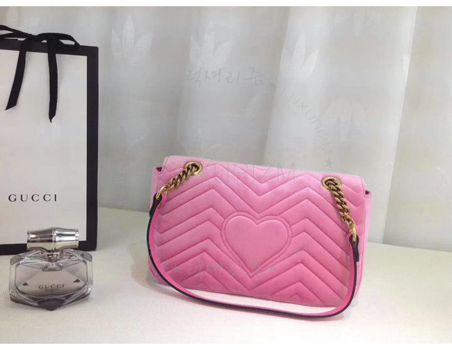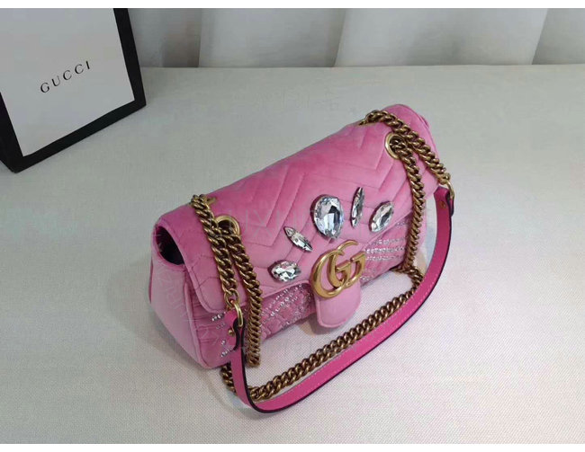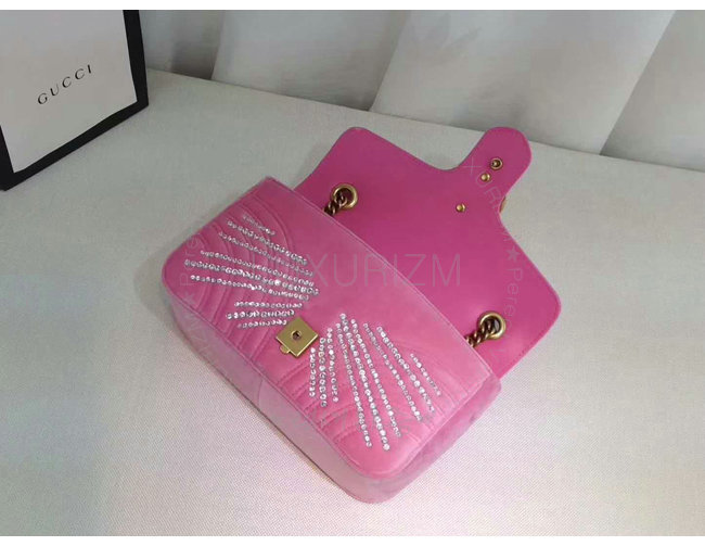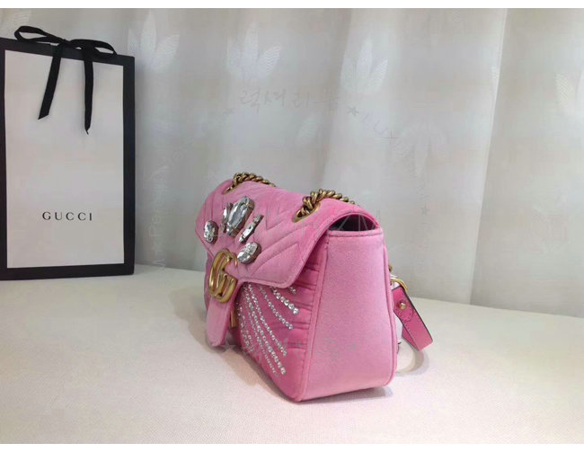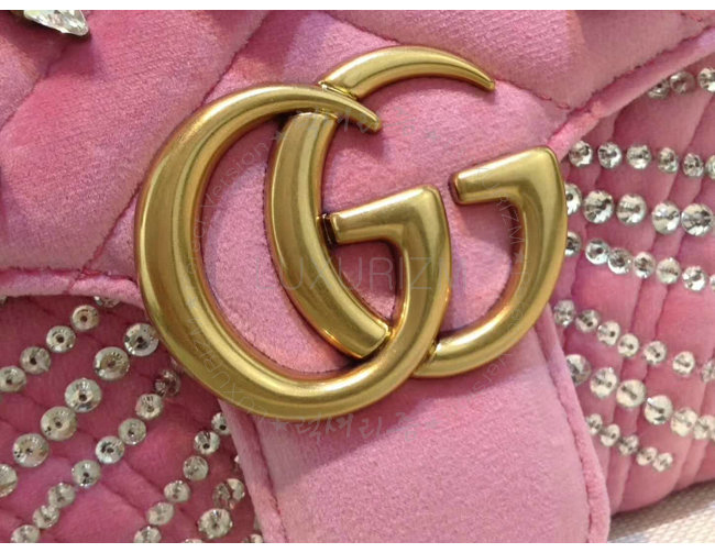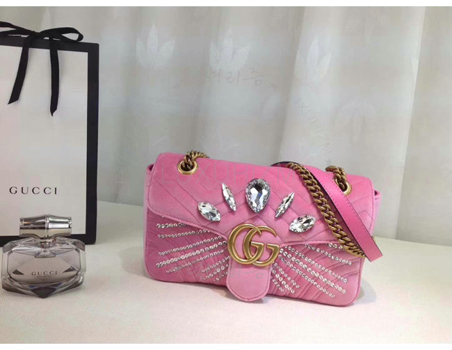 [스페셜오더]GUCCI-443497 5870 구찌 GG Marmont 크리스탈 장식 핑크 벨벳 숄더 백
