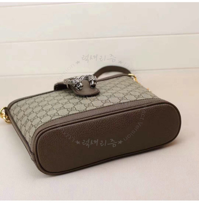 베이지/에보니 GG 수프림 캔버스 친환경 소재 브라운 가죽 트리밍 앤틱 실버/골드 톤 메탈 장식