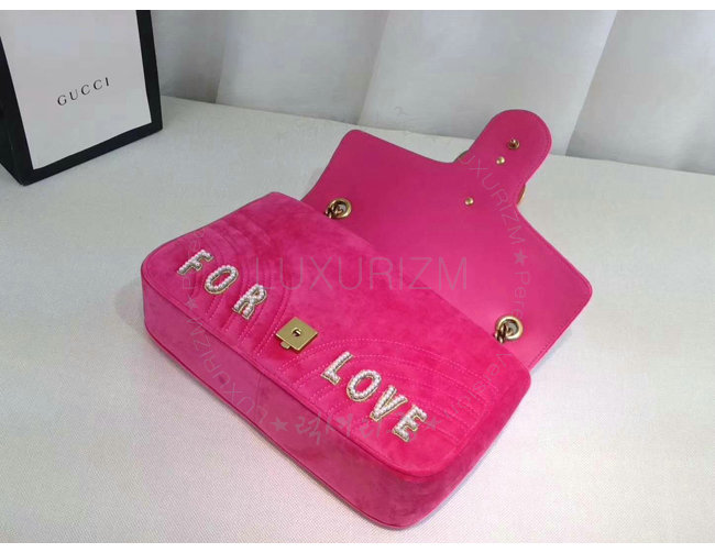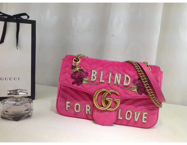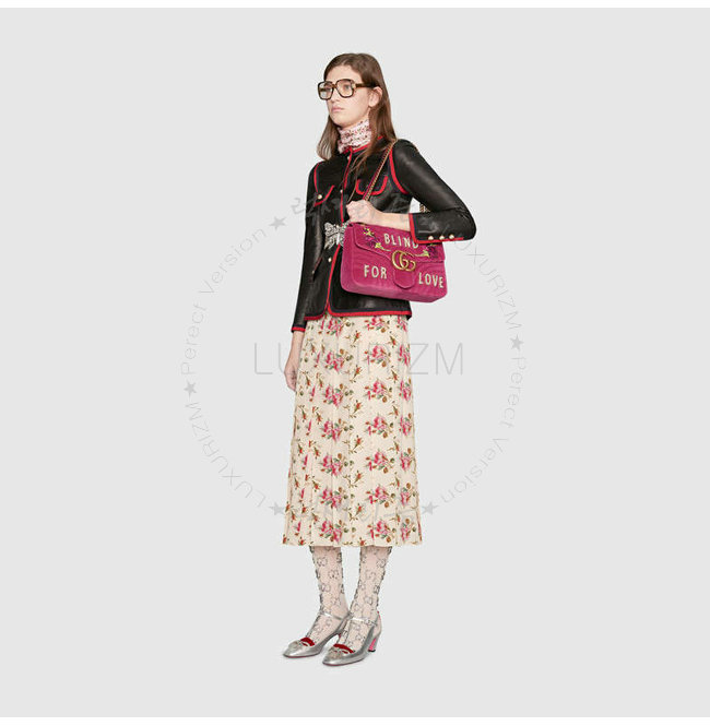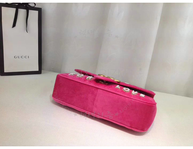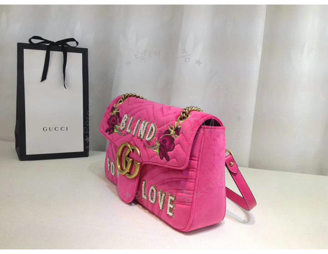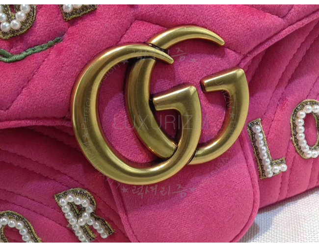 [스페셜오더]GUCCI-443496 5571 구찌 GG Marmont 핑크 벨벳 자수 미디엄 숄더백
