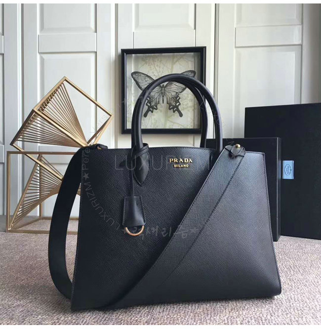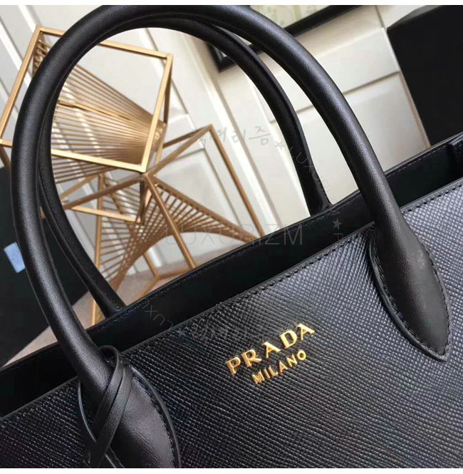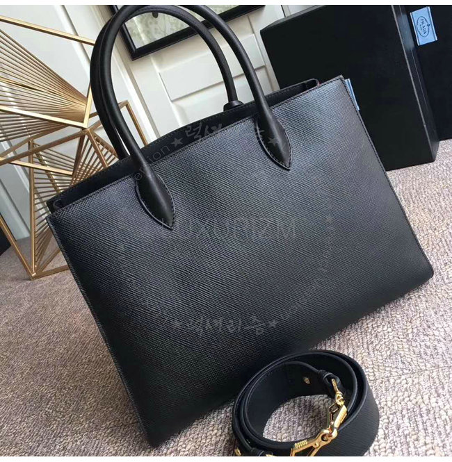 [스페셜오더]PRADA-1BA153 프라다 블랙 사피아노 가죽 라지 비블리오텍 토트백