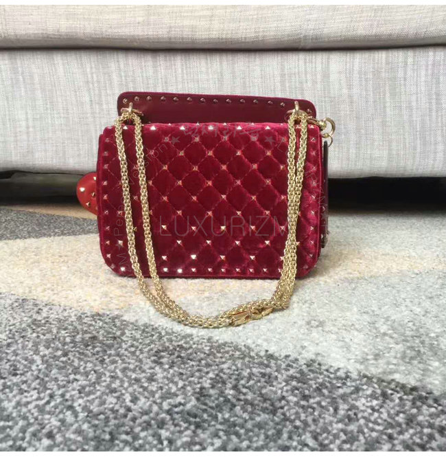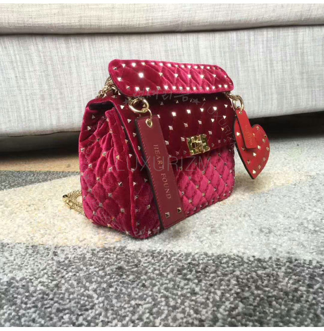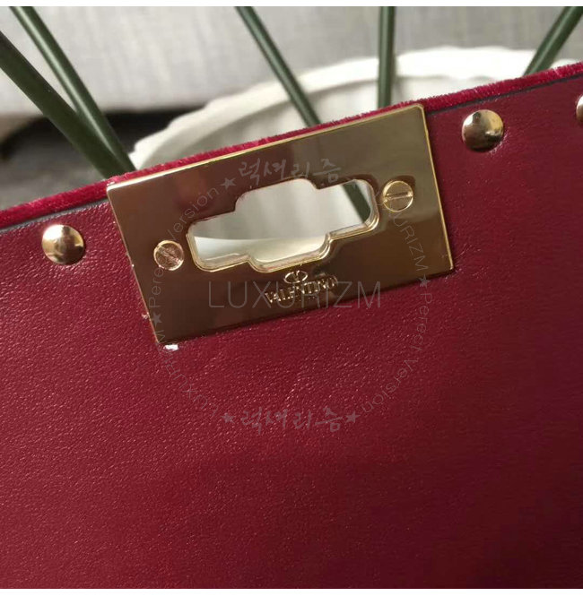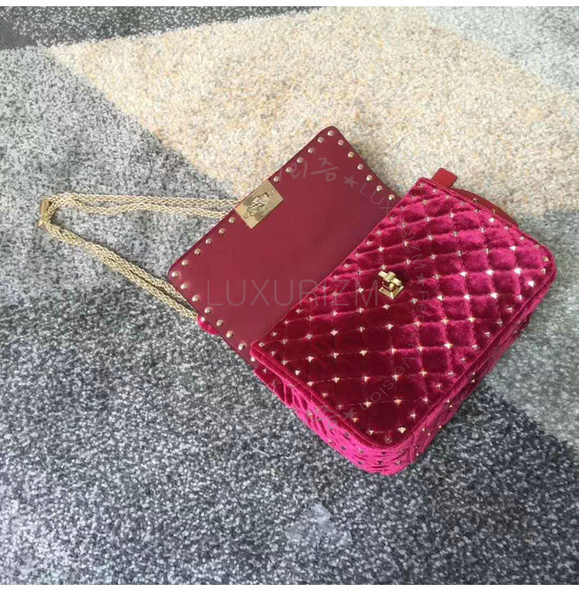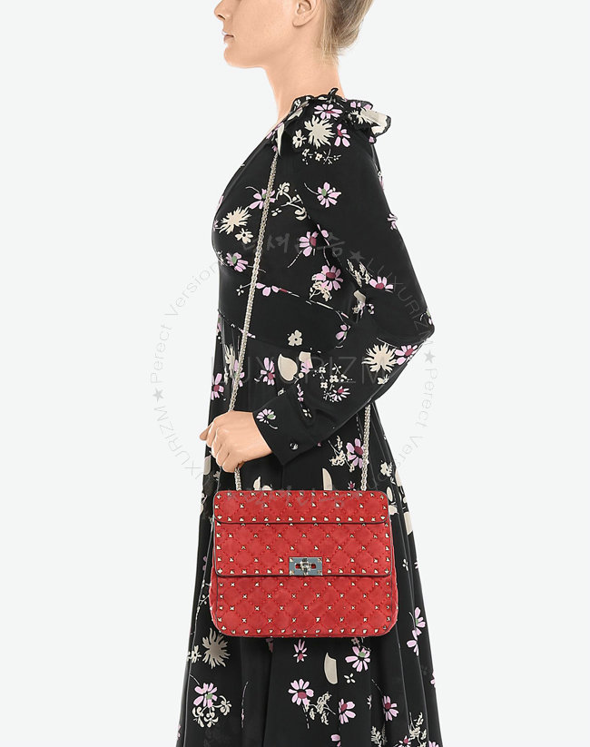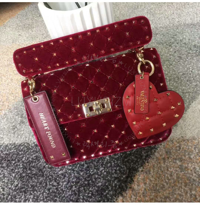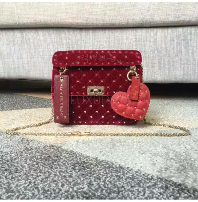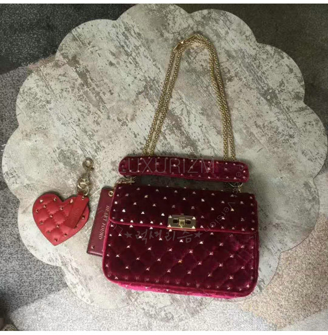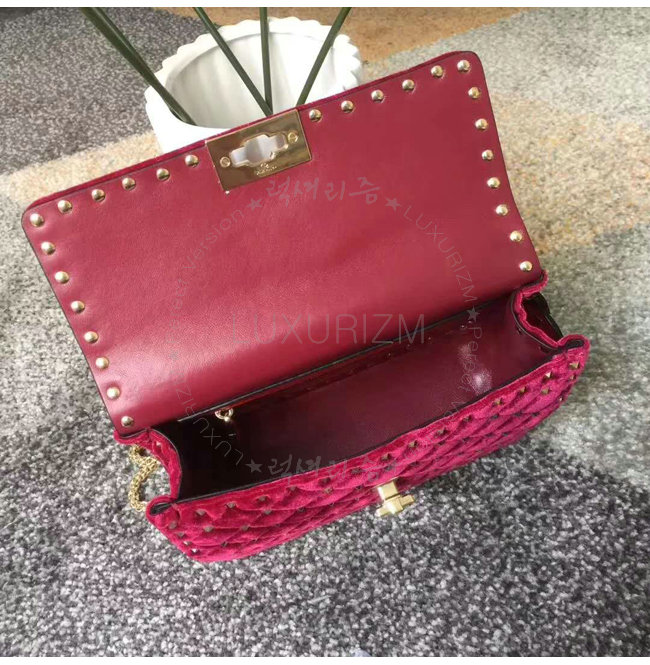 [스페셜오더]VALENTINO-MW0B01 발렌티노 스웨이드 가죽 미디엄 사이즈 락스터드 스파이크 레드 체인 백