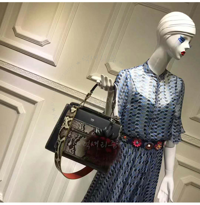 #펜디가방쇼핑몰 펜디신상쇼핑몰 홍콩명품가방쇼핑몰 럭셔리즘 [스페셜오더]FENDI-8BH344 펜디 송아지 가죽 스네이크 스킨 트리밍 블랙 스몰 런어웨이 토트 백