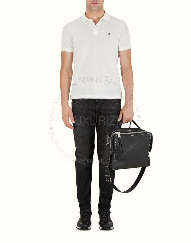 [스페셜오더]FENDI-7VA400 펜디 송아지 가죽 메탈릭 스티치 장식 블랙 메신저 백