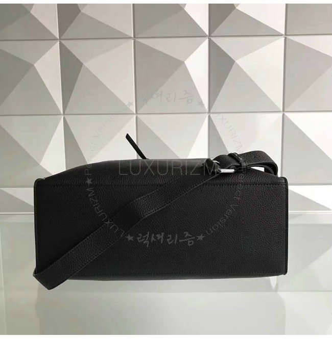 비대칭 핸들 2개와 가죽 지퍼 풀러가 달린 더블 지퍼 잠금장치. 길이 조절 및 탈부착