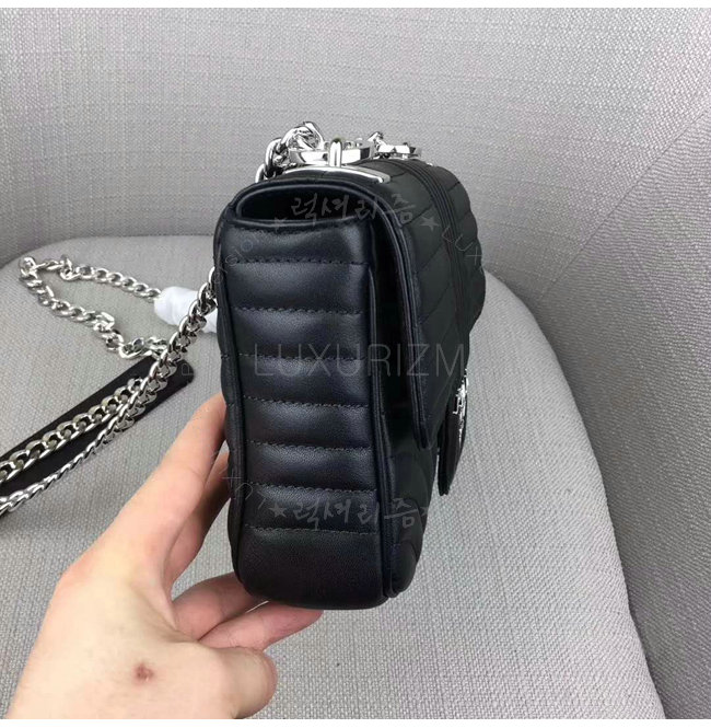 송아지 가죽 조절식 체인 숄더스트랩 플랩 및 스냅잠금 스틸마감 하드웨어