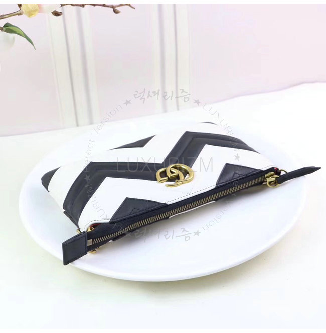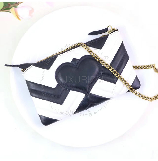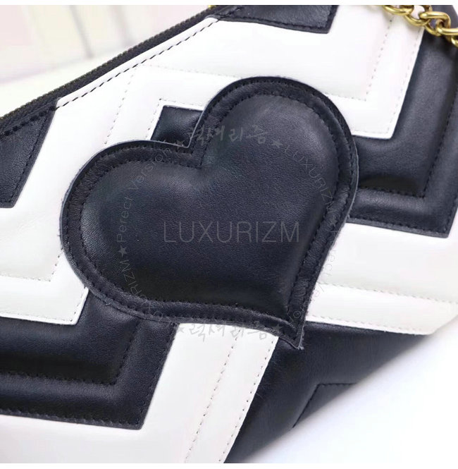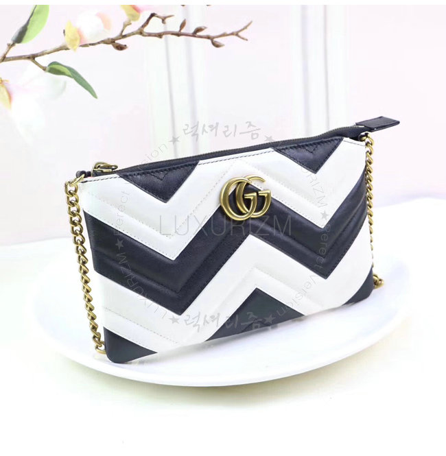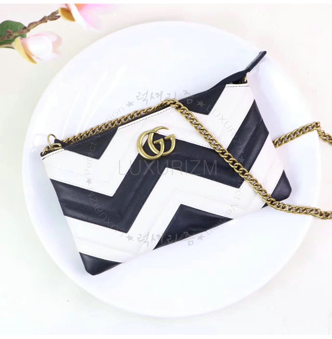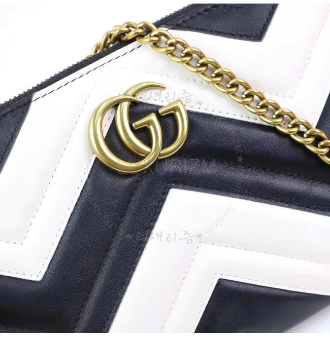 GUCCI-443447 1089 구찌 GG Marmont 블랙 화이트 마틀라세 가죽 미니 체인 백