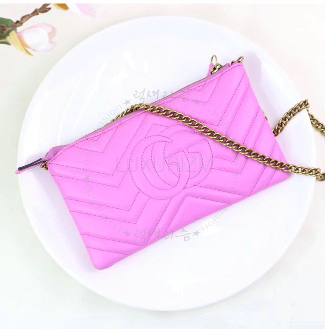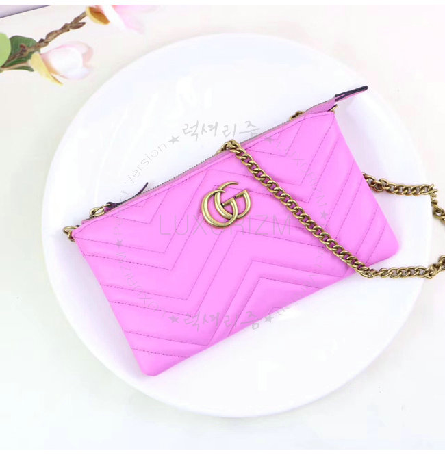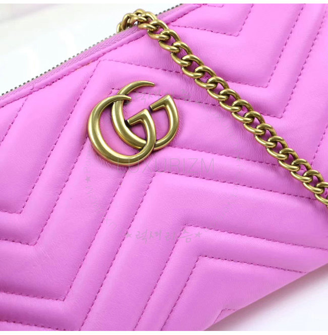 GUCCI-443447 5554 구찌 GG Marmont 핑크 마틀라세 가죽 미니 체인 백