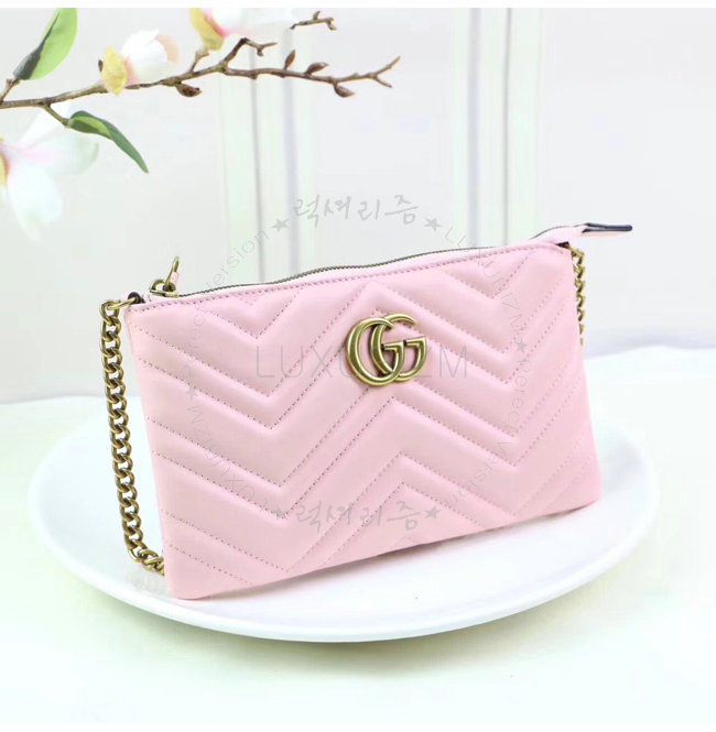 GUCCI-443447 5554 구찌 GG Marmont 핑크 마틀라세 가죽 미니 체인 백