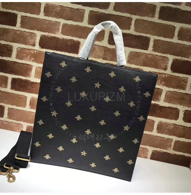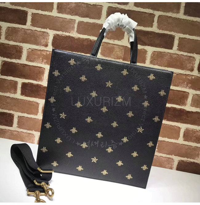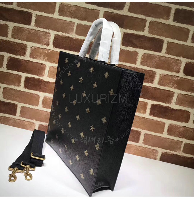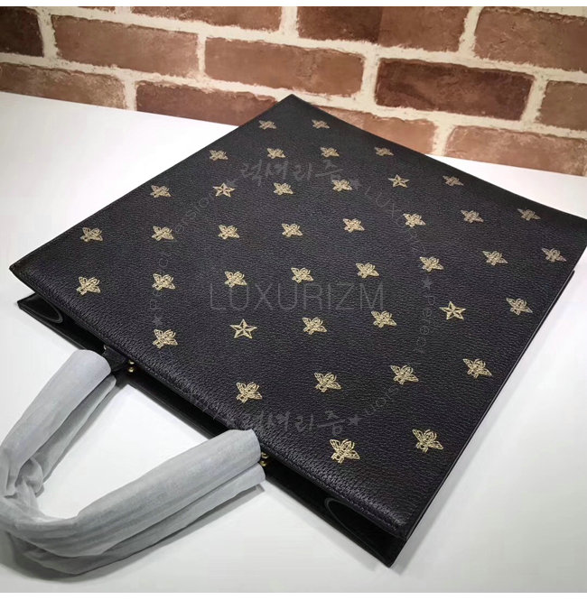 [스페셜오더]GUCCI-495444 8474 구찌 블랙 가죽 벌 별 프린트 토트 백