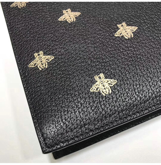 벌 모양과 함께 사용한 별 모양 모티브. 블랙 가죽에 프린트된 메탈릭 골드 프린트.
