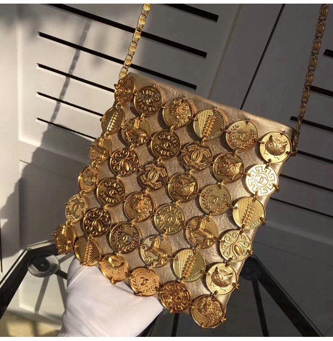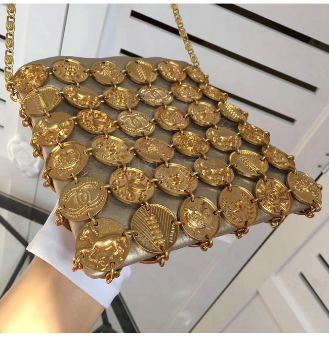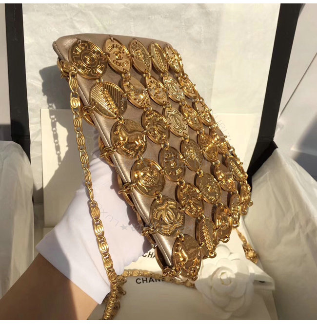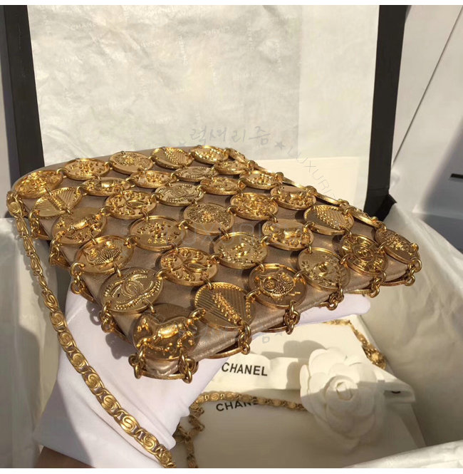 [스페셜오더]CHANEL-A94659 샤넬 메탈릭 램스킨 메달 트리밍 골드 이브닝 백