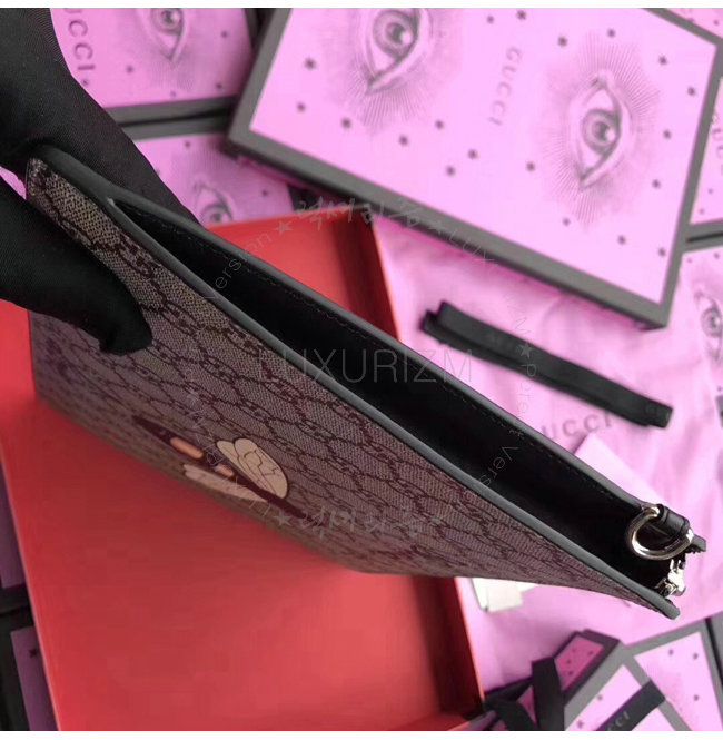 [스페셜오더]GUCCI-473904 8666 구찌 Gucci Bestiary 캣 프린트 GG 수프림 파우치
