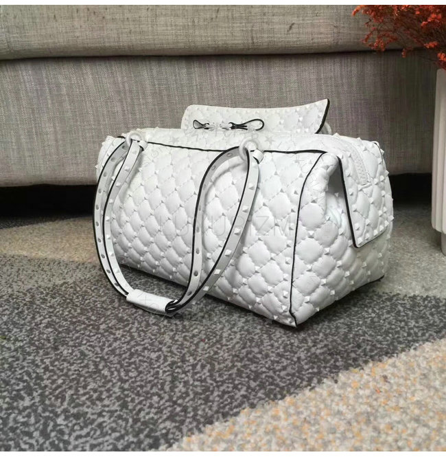[스페셜오더]VALENTINO-PW2B0B33 발렌티노 송아지 가죽 프리 락스터드 스파이크 화이트 더플 백