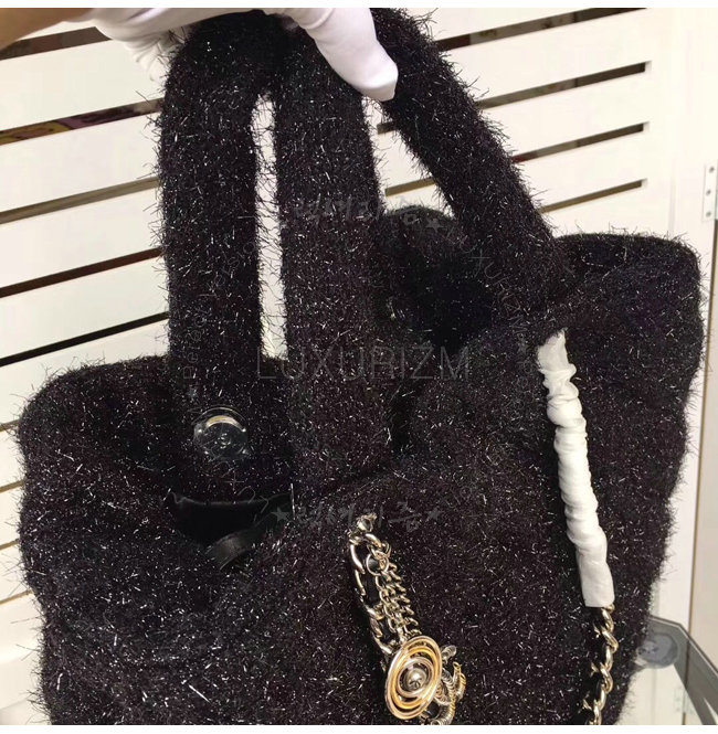 [스페셜오더]CHANEL-A91998 샤넬 니트 멜탈릭 램스킨 실버 메탈 블랙 라지 토트 백