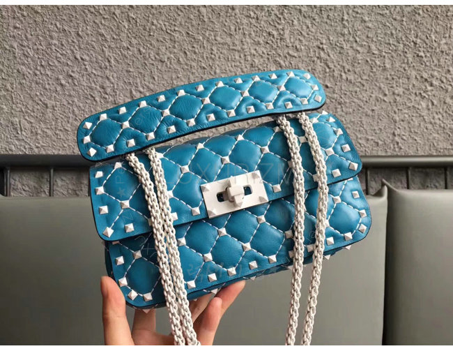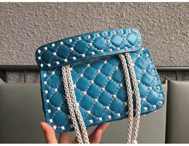 [스페셜오더]VALENTINO-PW2B0123 발렌티노 송아지 가죽 블루 스몰 프리 락스터드 스파이크 체인 백