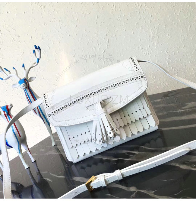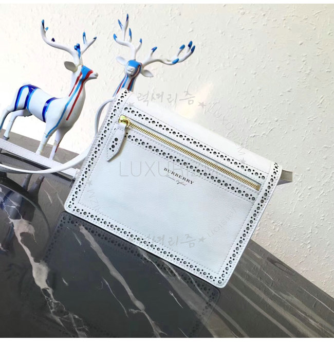 [스페셜오더]BURBERRY-40683441 버버리 송아지 가죽 브로그 프린지 디테일 화이트 크로스바디 백