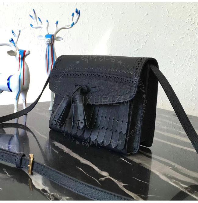[스페셜오더]BURBERRY-40683441 버버리 송아지 가죽 브로그 프린지 디테일 블랙 크로스바디 백