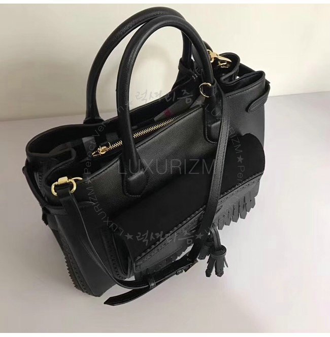 [스페셜오더]BURBERRY-40642871 버버리 송아지 가죽 미디엄 프린지 포켓 블랙 배너