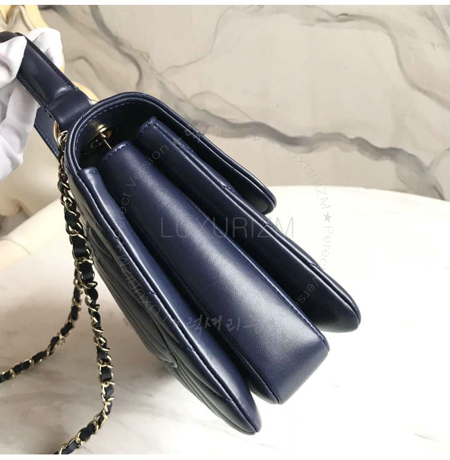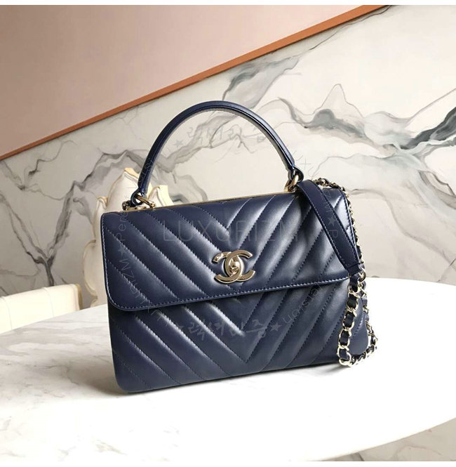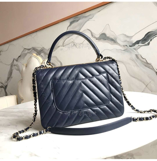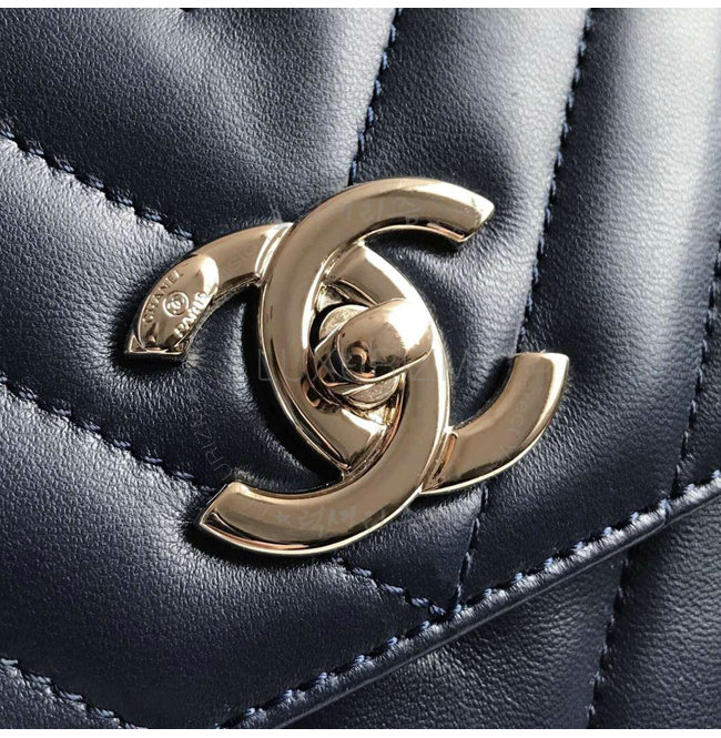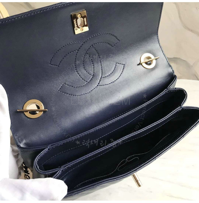 [스페셜오더]CHANEL-A92236 샤넬 로얄블루 골드 톤 메탈 스몰 쉐브론 탑 핸들 플랩백