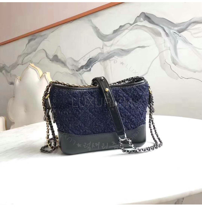[스페셜오더]CHANEL-A91810 샤넬 트위드 카프스킨 네이비 블랙 스몰 가브리엘 호보 백