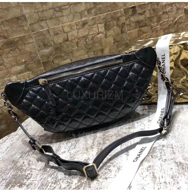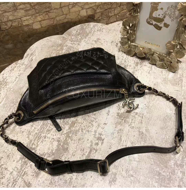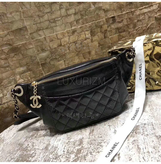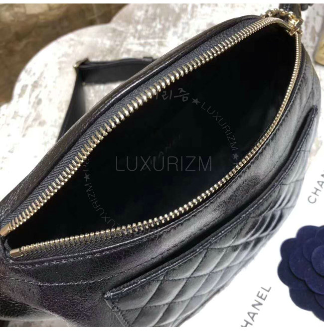 [스페셜오더]CHANEL-A57832 샤넬 크럼플드 램스킨 골드 메탈 블랙 웨이스트 백