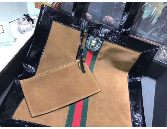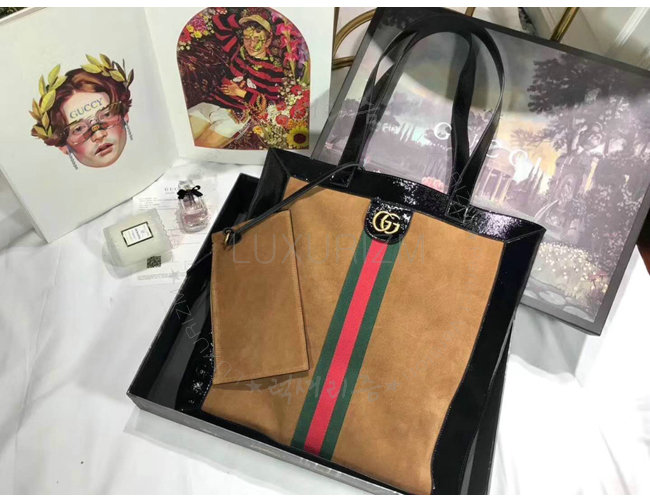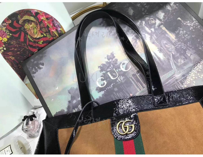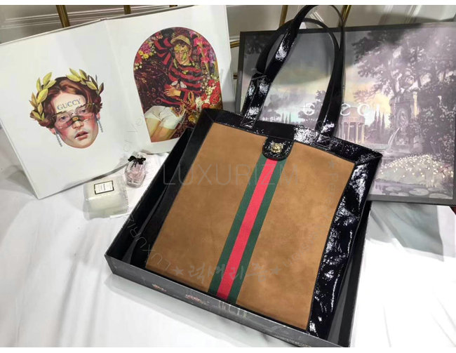 [스페셜오더]GUCCI-519335 2863 구찌 Ophidia 체스트넛 스웨이드 Web 디테일 라지 토트백