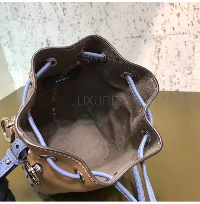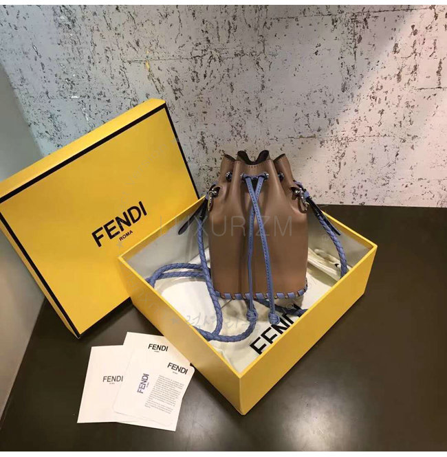 스몰 몽 트레죠르 버킷 백. 드로우스트링 잠금장치와 F is Fendi 로고