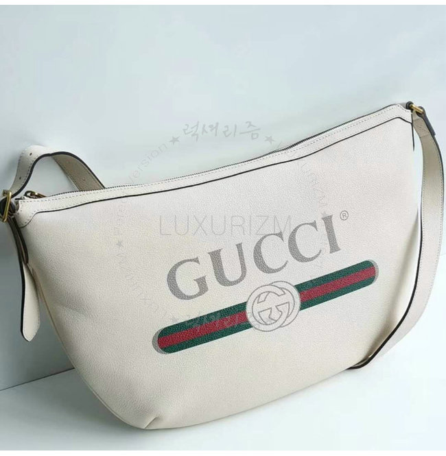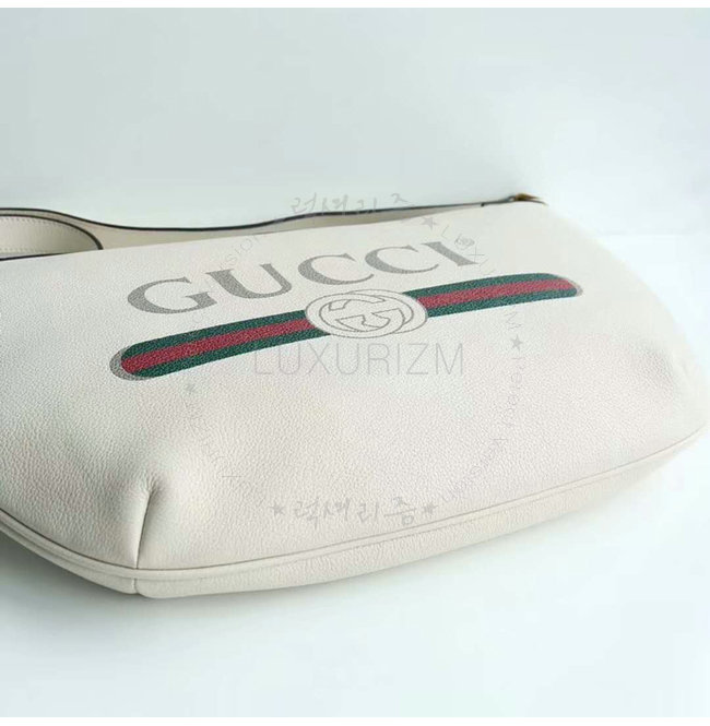 [스페셜오더]GUCCI-523588 8820 구찌 화이트 가죽 구찌 프린트 반달 모양 호보백