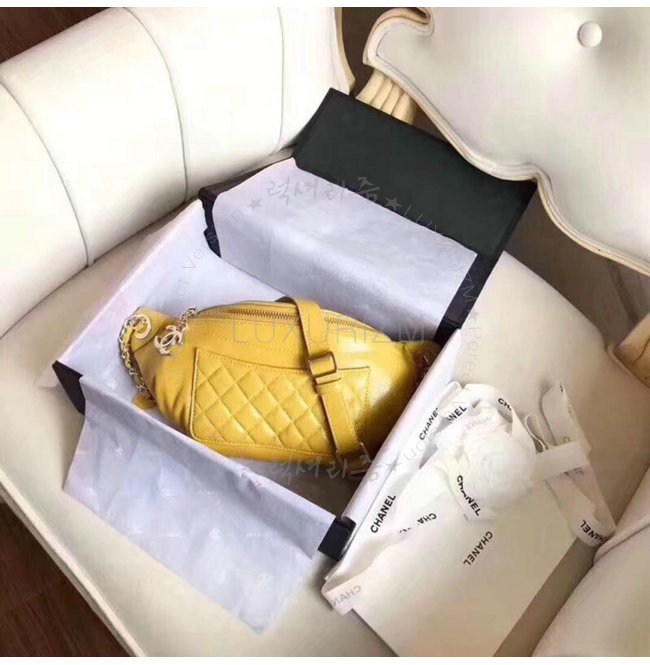 [스페셜오더]CHANEL-A57832 샤넬 크럼플드 램스킨 골드 메탈 옐로우 웨이스트 백