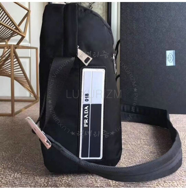 [스페셜오더]PRADA-2VH026 프라다 기능성 페브릭 외부 고무 로고 블랙 밴돌리어 백