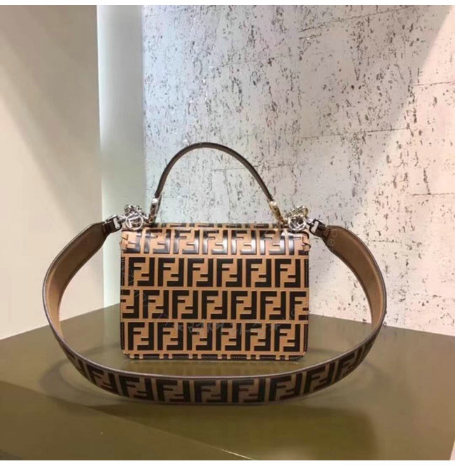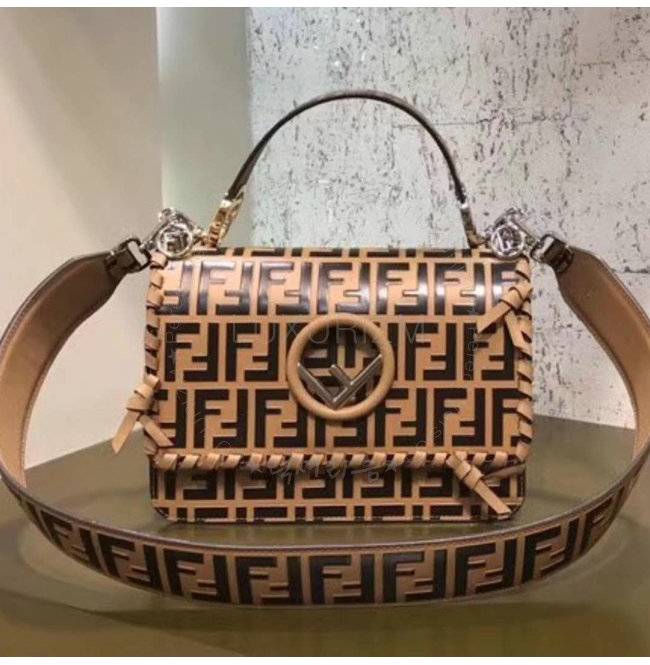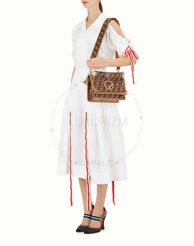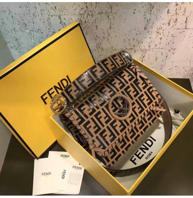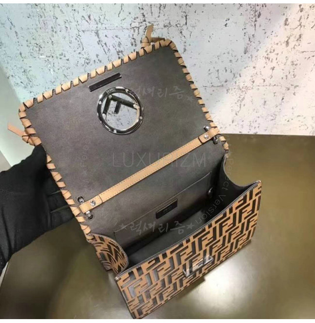 [스페셜오더]FENDI-8BT284 펜디 송아지 가죽 FF 로고 프린트 스티치 장식 브라운 캔 아이 에프