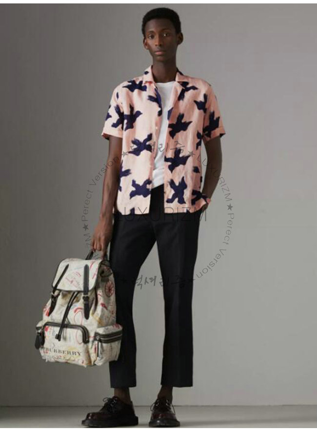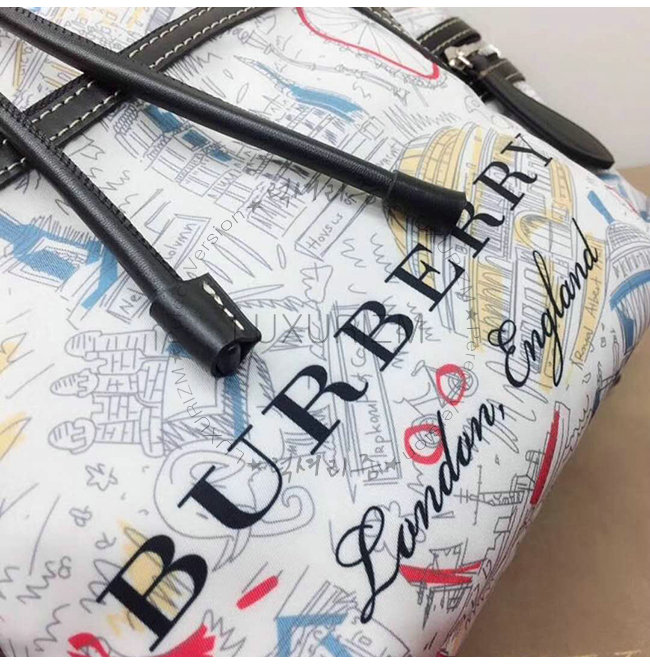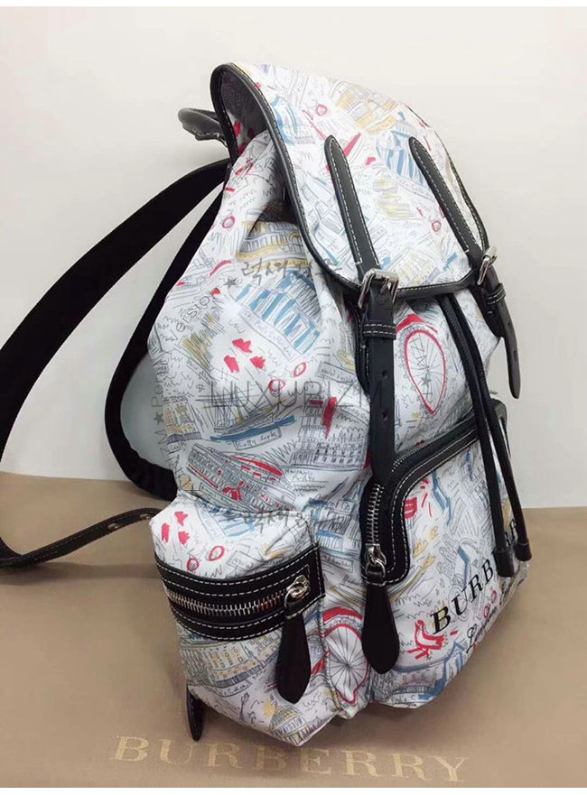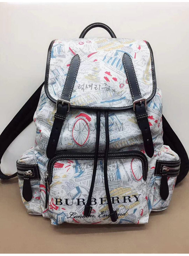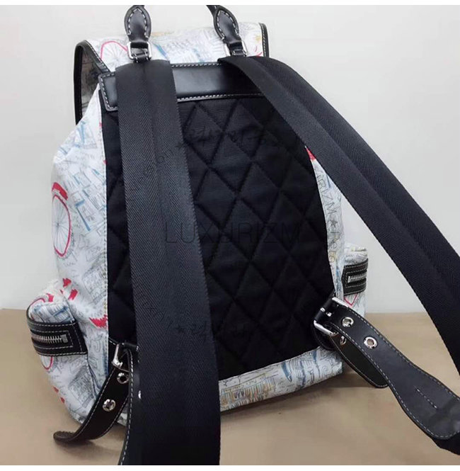 [스페셜오더]BURBERRY-40682871 버버리 라지 런던 프린트 캔버스 가죽 럭색