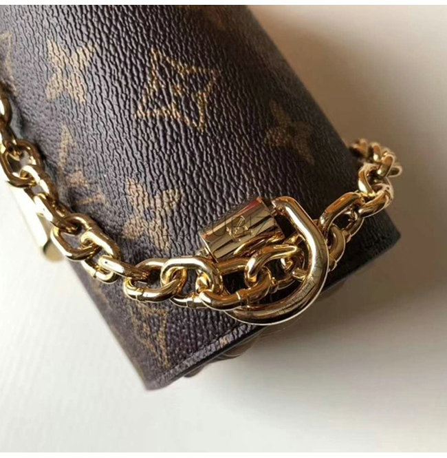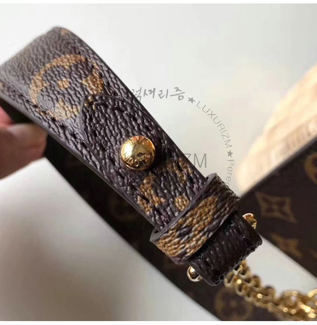 디테일 모노그램 캔버스 패드가 내장된 95cm 체인 숄더 스트랩 움직이는 시그니처 LV