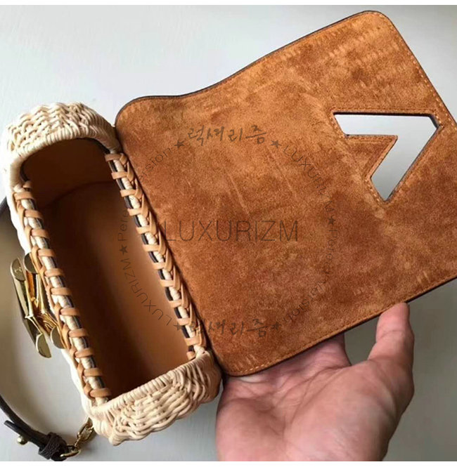 모노그램 캔버스와 가죽 내피를 덧댄 수작업으로 엮은 위커 디테일을 조합한