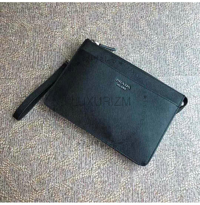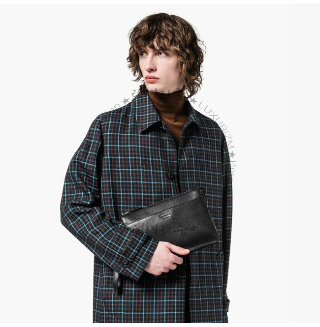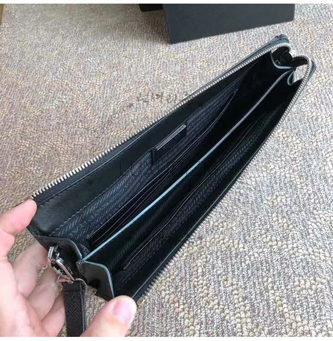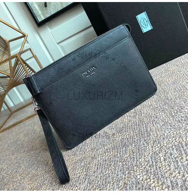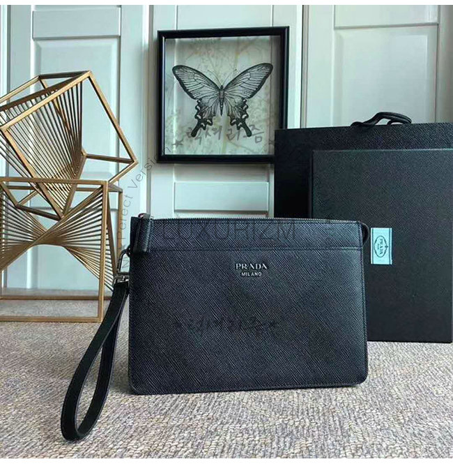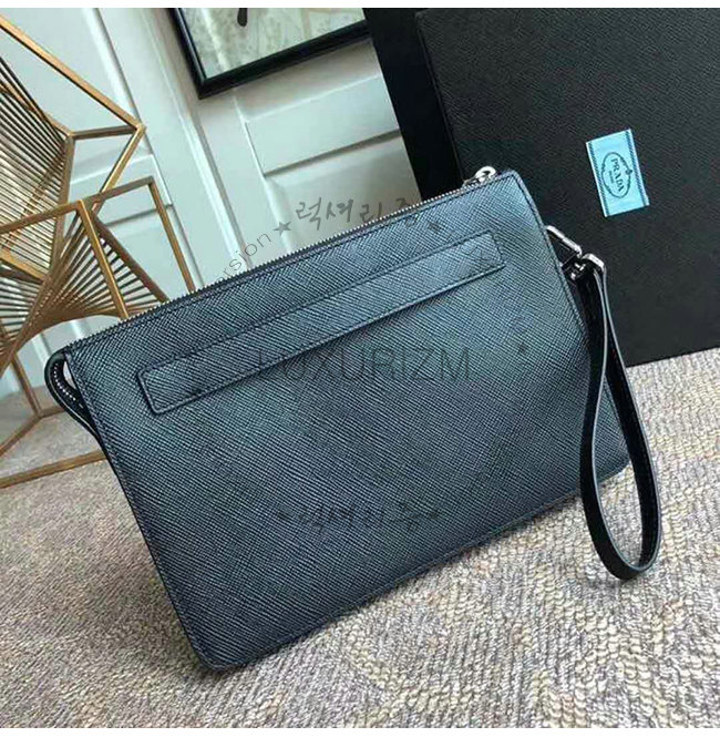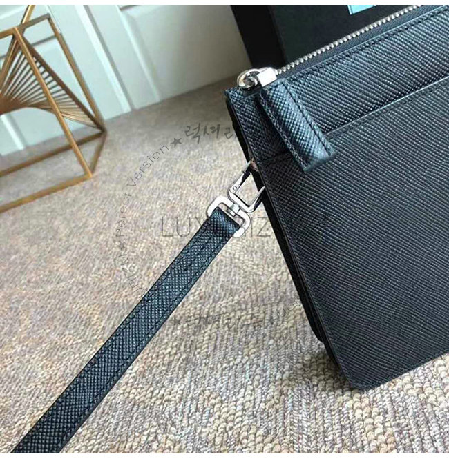 [스페셜오더]PRADA-2VF019 프라다 사피아노 가죽 메탈 레터링 로고 블랙 파우치