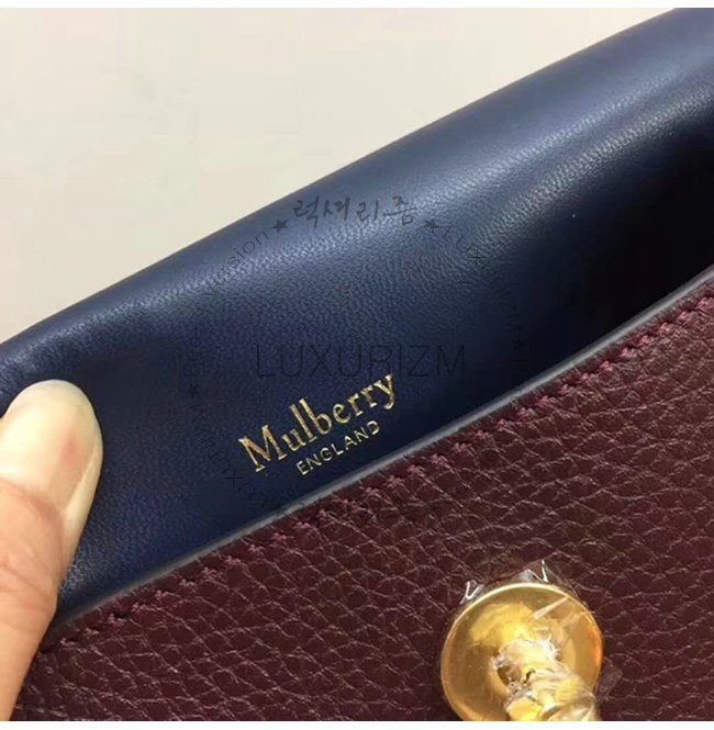 내부에 포일 엠보싱 Mulberry 시그너처 주 수납 공간 1개 브라스로 마감 처리 폴리우레탄 안감.