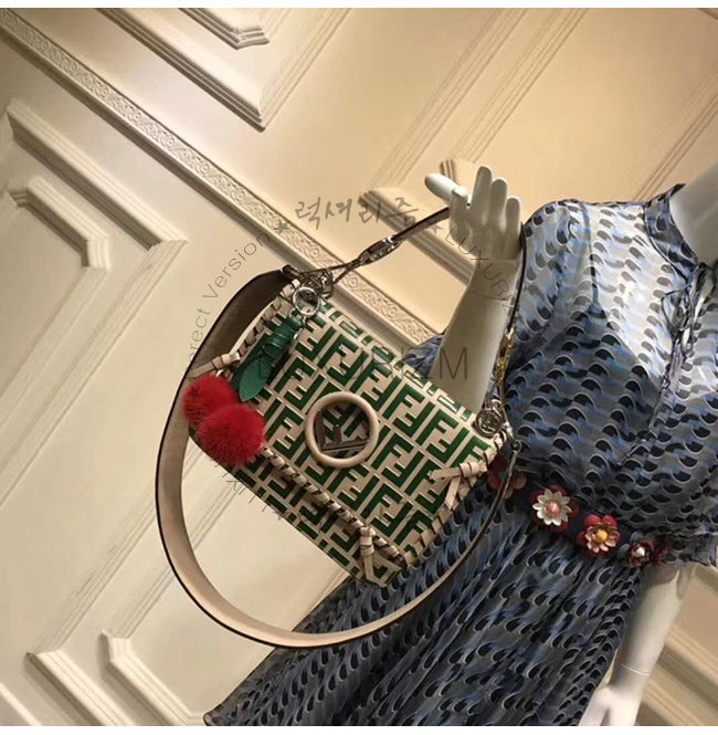 [스페셜오더]FENDI-8BT284 펜디 송아지 가죽 FF 로고 프린트 스티치 장식 그린 캔 아이 에프